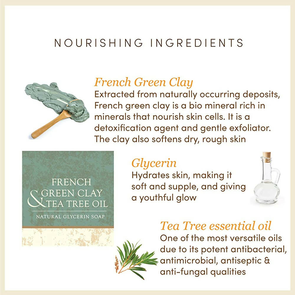 - Renowned for their antibacterial and anti-inflammatory qualities, French green clay and tea tree oil come together in The Earth Reserve French Green Clay and Tea Tree Oil Soap. This soap, enhanced with natural glycerin, provides a luxurious way to care for your skin daily.