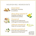- Cocoa butter, essential oils of ylang-ylang, tuberose, jasmine, coconut oil