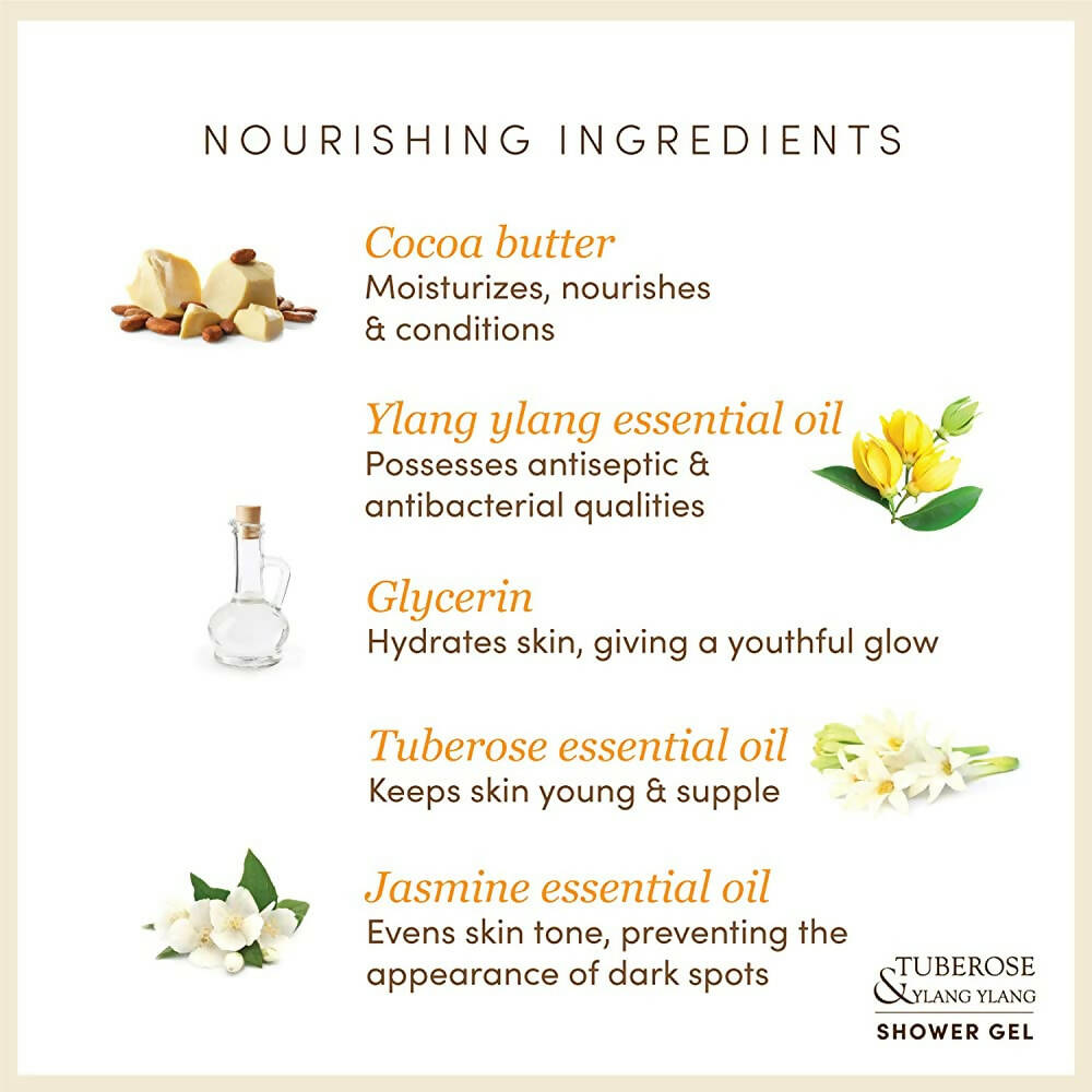 - Renowned for its invigorating qualities, tuberose is perfectly paired with the aromatic and essential oil-rich ylang-ylang and jasmine. The Earth Reserve Tuberose and Ylang Ylang Shower Gel artfully blends these components with natural glycerin and cocoa butter, allowing you to indulge your skin in daily luxury.