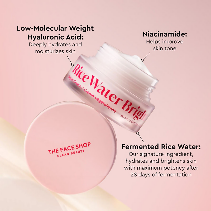 The Face Shop Rice Water Cream with Niacinamide & HA, Brightens Skin