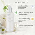 - Experience the translucency of The Face Shop White Seed Brightening Toner, crafted to illuminate your complexion and banish dullness without any sticky aftermath. This toner features a blend of radiance-enhancing ingredients, including white lupin seed, renowned for its natural brightening properties, and white daisy flower extract, which aids in diminishing dullness, leaving your skin luminous and clear.