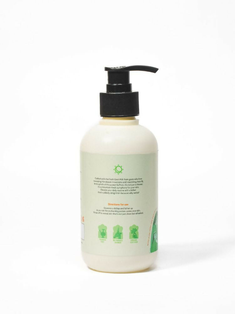 About the product:Formulated with the freshest goat milk from goats that joyfully roam the Himalayan peaks, complemented by a touch of the purest saffron. This is more than a shower; it's a refreshing mountain harmony for your skin. Enhance your daily ritual with a lather that's utterly delightful—because when you can have the finest, why settle for less?