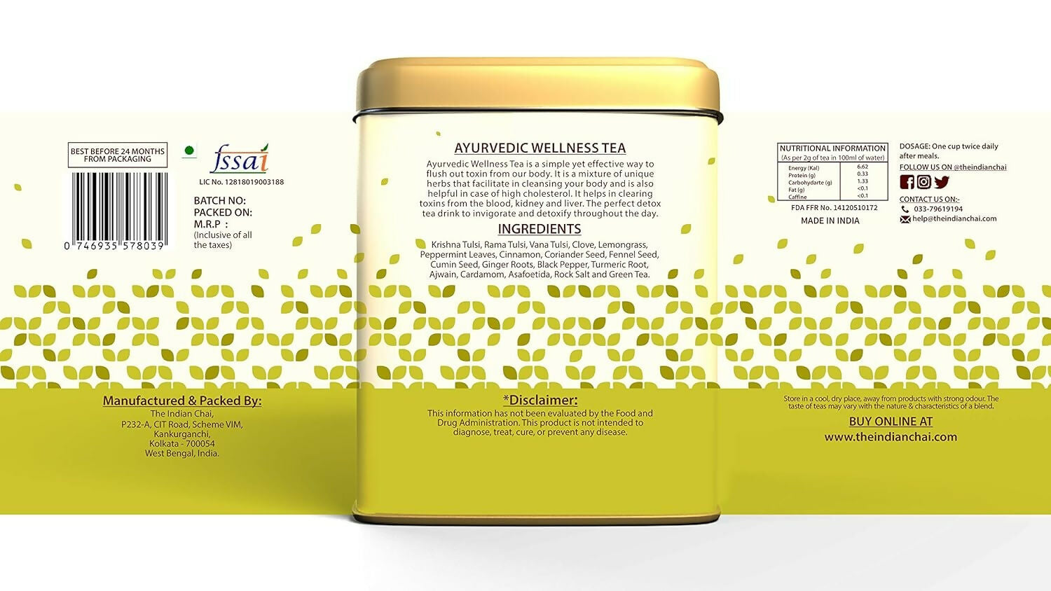 - Experience the benefits of our Ayurvedic wellness tea, meticulously formulated to enhance vitality and refreshment. This herbal concoction is crafted to assist your body's innate cleansing mechanism, facilitating the elimination of impurities. With a carefully curated mix of Ayurvedic herbs and spices, this tea offers a comprehensive approach to boosting overall health. Discover the essence of Ayurveda and enjoy a cup of this invigorating and replenishing wellness tea.