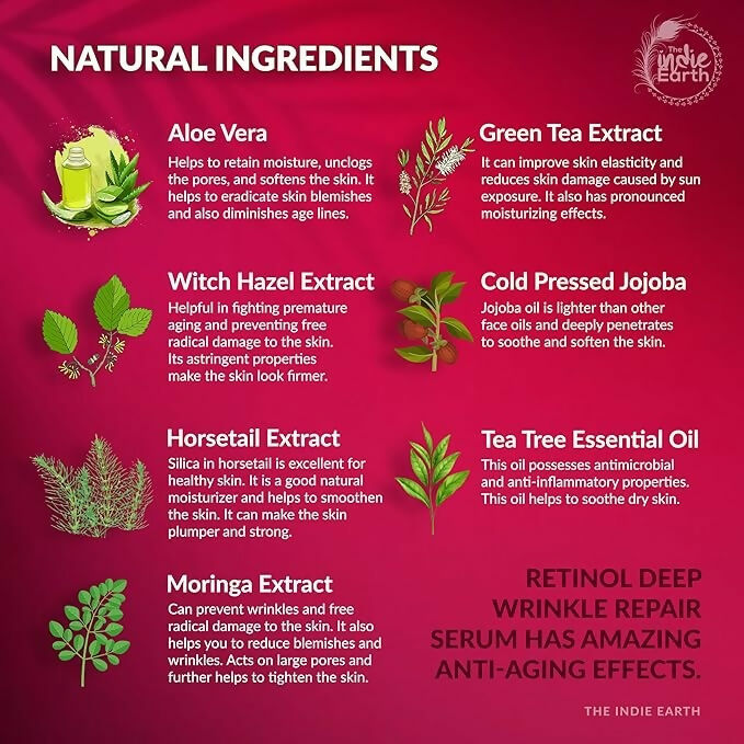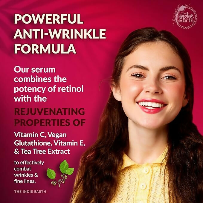 About the product:The Indie Earth, formerly recognized as KHADI GLOBAL, offers a Retinol serum that significantly benefits the skin in numerous ways. It stands as one of the most potent anti-aging solutions available and is also effective in managing oily skin. Retinol is known to diminish age spots, lessen fine lines and wrinkles, and leave the skin feeling smoother. Additionally, it aids in controlling acne and regulates skin oil production, while also minimizing the appearance of pores. By enhancing cellular turnover, it serves as an excellent preventative against aging. Glutathione assists in restoring the skin to its most pristine and fair tone.