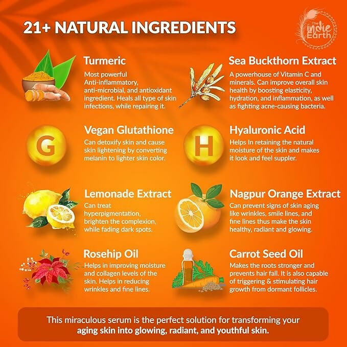 About the product:The Purest & The Best – The Indie Earth Vitamin C Serum effortlessly serves as a remedy for those stubborn signs of aging, while also being ideal for preventing them from developing in the future. For Facial Skin, This Serum is an excellent antioxidant, essential for shielding Skin from the aging effects of unseen aggressors like pollution & harmful UV rays that hinder you from achieving ultimate healthy radiance. Extremely effective in combating Smile lines, Fine lines & Wrinkles.