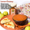 The vibrant essence of lemons captured in a preservative-free chutney, enriched with spices and traditional sugar.
