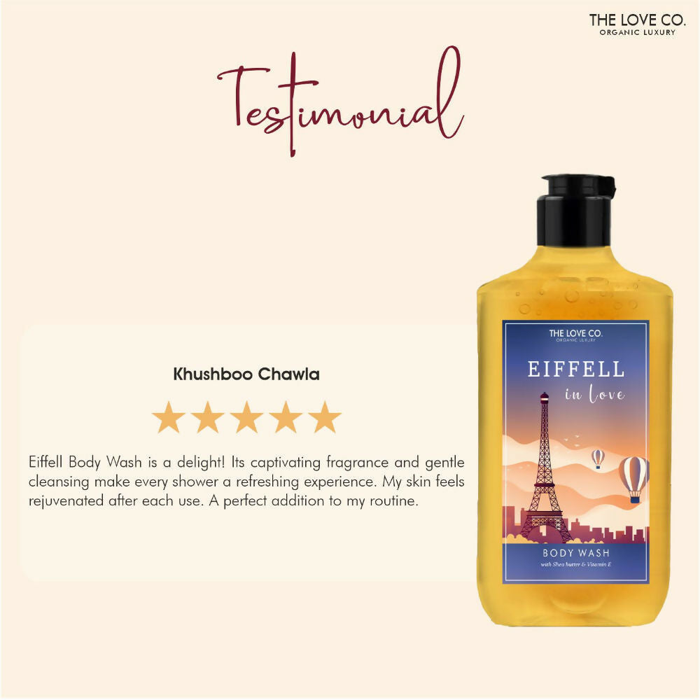 The Love Co. Eiffel in Love Body Wash Shower Gel delicately and thoroughly cleanses away grime, oil, and bacteria with a luxurious, creamy foam that leaves skin feeling soft