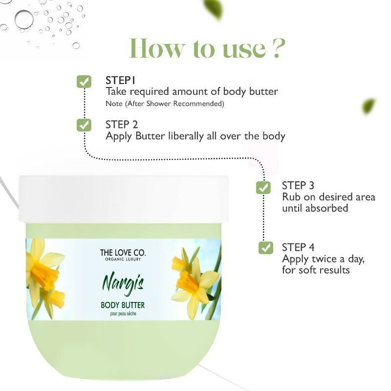 The Love Co. Nargis Body Butter is a moisturizing cream that is gentle, lightweight, and non-greasy, making it ideal for any skin type. The body's skin quickly absorbs the butter, so a small amount is sufficient. To achieve smooth, silky-soft skin, apply the butter from head to toe. Formulated with shea butter, vitamin E, and jojoba oil, this nourishing body butter hydrates and revitalizes dry hands for softer, more resilient skin. It is non-greasy and absorbs swiftly, leaving your hands silky throughout the day.