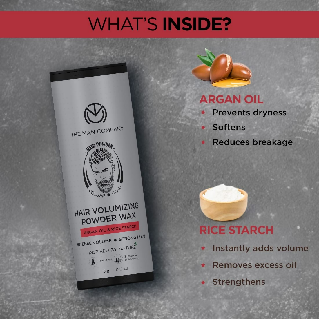 About the Product:- INSTANT VOLUME BOOST: The Man Company Hair Volumizing Powder Wax for men delivers immediate lift to lifeless, oily, or greasy hair. This volumizing powder is your on-the-go styling companion, allowing you to fashion your hair to your preference.