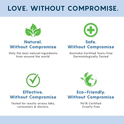 Free from parabens and mineral oils, our offerings are completely devoid of harmful chemicals. Part of our All-Natural, Australia-Certified Toxin-Free, and PeTA-Certified Cruelty-Free collection.