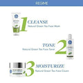 - Gently apply a suitable amount of Natural Green Tea Cream across the face & neck.