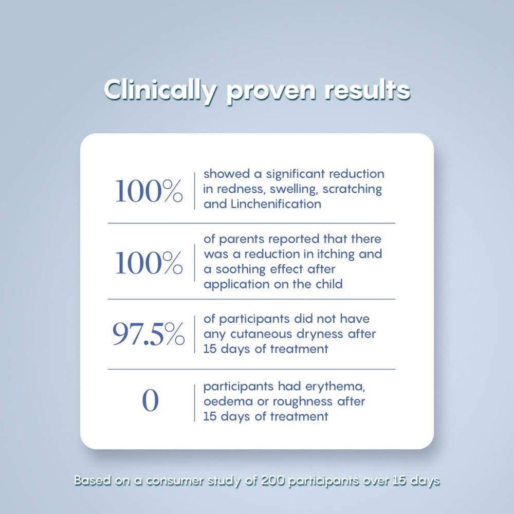 1% Colloidal oatmeal: Renowned for alleviating skin dryness and itchiness, it moisturizes skin, retains moisture & fortifies the skin barrier.