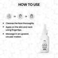 - With your fingertips, gently massage a small amount of the serum onto your face and neck using an upward circular motion.
