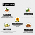 - Argan Oil, Olive Oil, Avocado Oil, Almond Oil, Sunflower Oil.