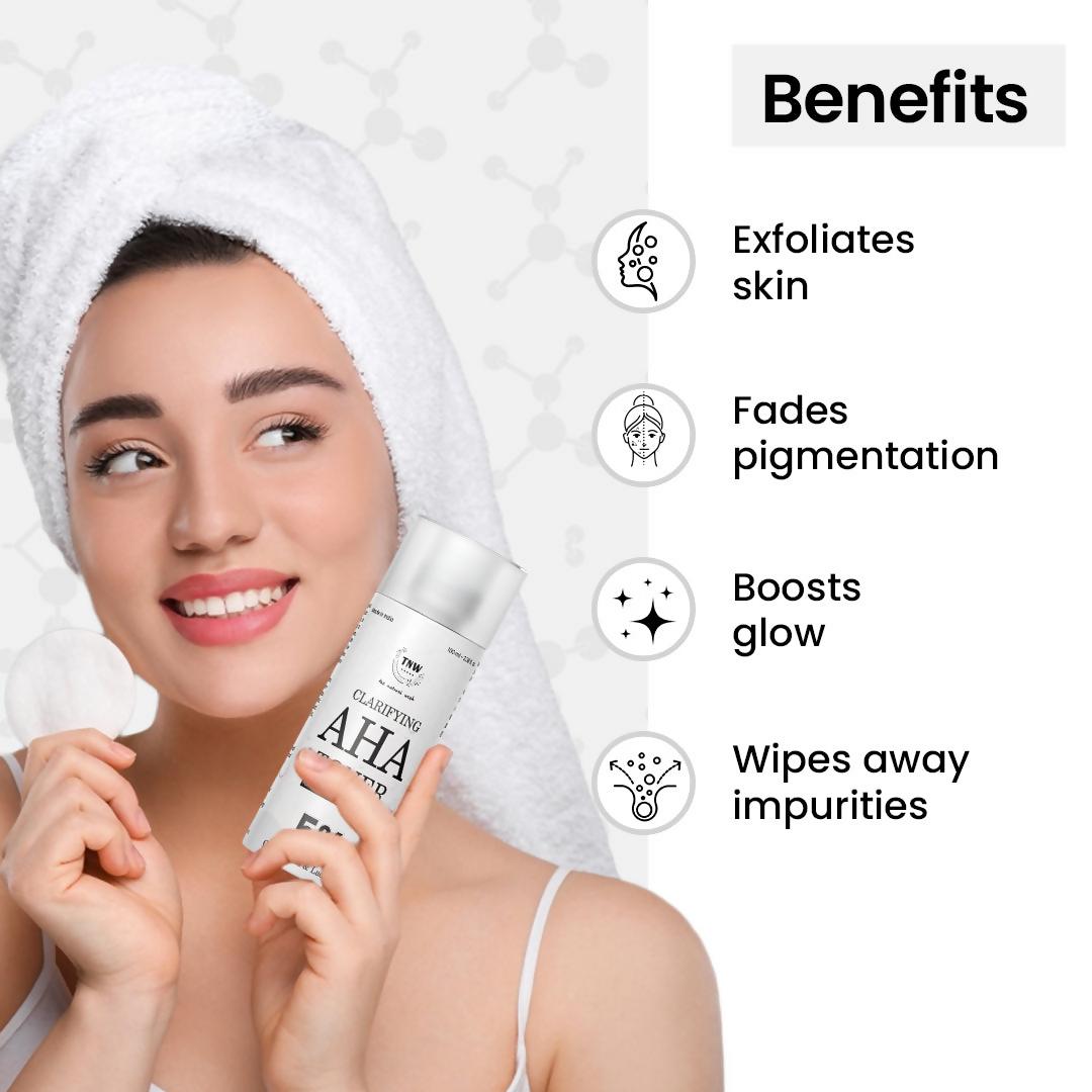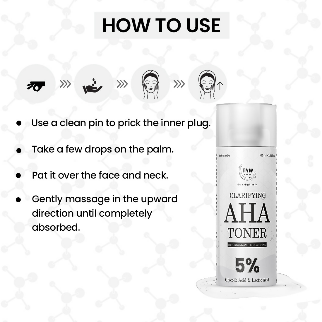 - Discover the potent benefits of The Natural Wash Clarifying AHA Toner, featuring 5% Glycolic Acid and Lactic Acid. This effective toner works to exfoliate and refine your complexion by eliminating dead skin cells, unclogging pores, and diminishing the appearance of fine lines and wrinkles. Enriched with natural extracts, it calms and moisturizes your skin, enhancing its brightness and vitality. Ideal for all skin types, this toner gently exfoliates while preserving your skin's essential oils.