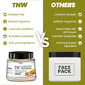 Description: In today's world, tanning has become a prevalent issue. It often leaves the skin appearing dull and lifeless, accentuating imperfections. That's why TNW offers an essential Ayurvedic de-tan pack designed for radiant skin. The Natural Wash’s Brightening Tan Reduction Pack is crafted with all-natural ingredients to address tanning, pigmentation, and reduce dark spots along with other skin imperfections. This natural body pack is suitable for all skin types, being completely devoid of chemicals. Sun exposure and pigmentation not only affect our skin but also our self-esteem. In pursuit of flawless, radiant skin, many resort to harsh chemical treatments that can further damage the skin. To protect against this, TNW provides a de-tan pack that not only eliminates tan but also reduces other skin blemishes, dark spots, acne marks, pigmentation, and darkened areas under the arms and even thighs. This tanning pack offers the advantages of a Chandan pack or Multani Mitti pack, enriched with beneficial ingredients renowned for promoting glowing, flawless skin. Its chemical-free formulation ensures it is safe for use all over the body, naturally addressing imperfections.Ingredients: Fuller's Earth (Multani Mitti), Oats, Red Lentils, Oryza Sativa (Rice), Gram Flour (Besan), Prunus Dulcis (Almond), Potato, Pomegranate Peels, Sandalwood, Neem, Mentha (Mint), Calamine, Orange Peels, Curcuma Longa (Turmeric), Rose, Fenugreek, Basil, Sodium Benzoate
