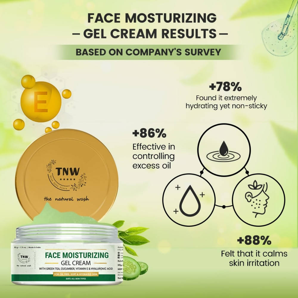 Deeply Nourishes the Skin: Infused with the richness of Vitamin E, hyaluronic acid, and aloe vera, TNW Face Moisturizing Gel-Cream effectively nurtures your skin without leaving it oily. It revitalizes parched skin by providing intense hydration.