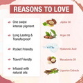 About the product:Discover The Natural Wash's Matte Velvet Longstay Liquid Lipstick in a compact mini version! This lipstick boasts a nurturing blend, enriched with the benefits of Macadamia Oil and Argan Oil, offering a matte finish that is transfer-resistant, lightweight, and perfect for everyday comfort.