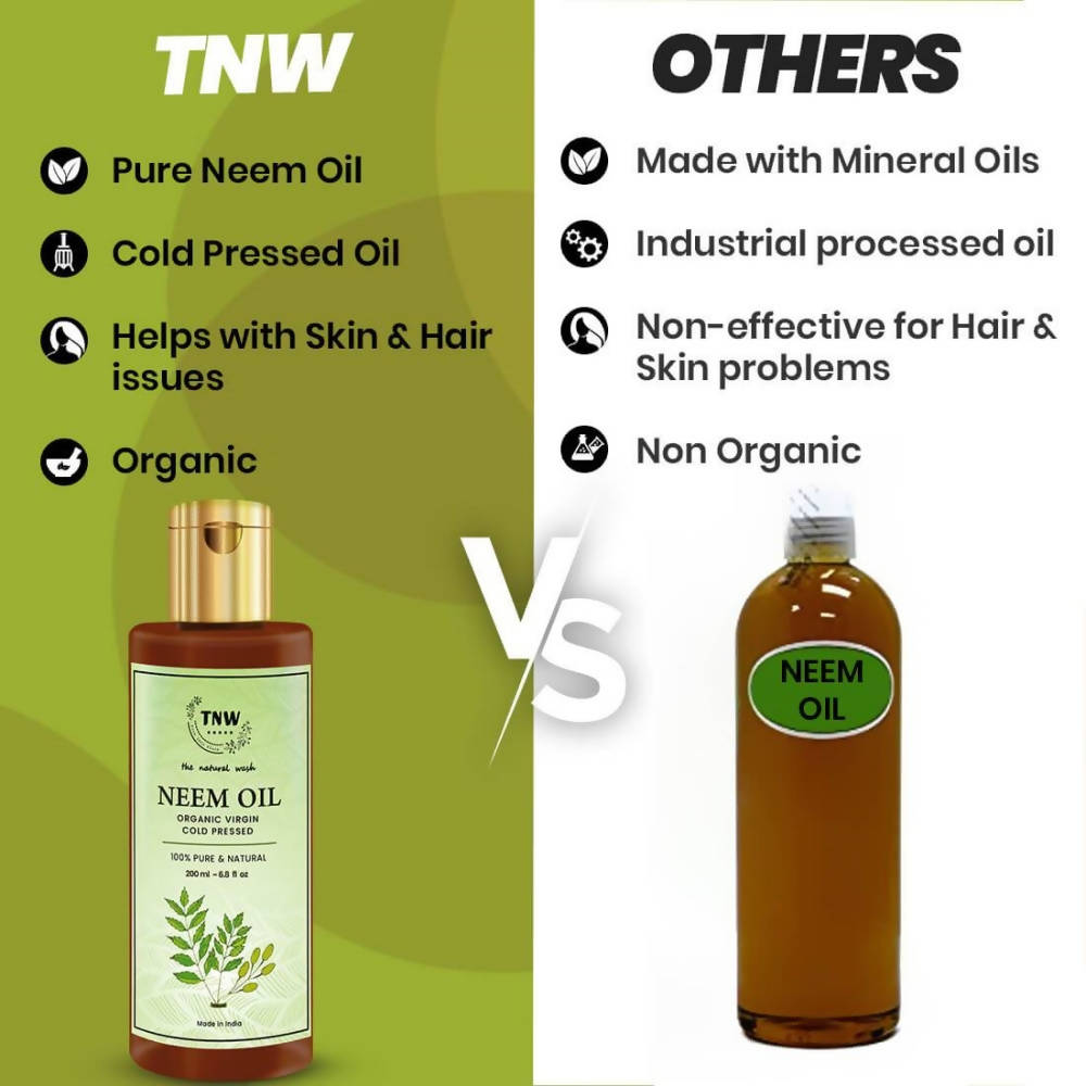 Description: TNW Virgin Neem oil is an exceptionally potent supplement, as Neem possesses inherent Ayurvedic benefits. In its unadulterated form, this oil is highly effective against fungal infections, aiding in the reduction of acne scars and dandruff. Utilize this pure Neem oil according to the instructions for optimal results. It prevents and combats bacterial infections due to its antibacterial properties. Neem is renowned for its significant antibacterial and antifungal characteristics. As a crucial component of Ayurveda, it not only heals but also purifies. Neem, as a remarkable herb, naturally remedies numerous bacterial infections. Recognizing its importance, TNW offers Virgin NeemOil; this oil is the purest form of Neem oil as it is cold-pressed virgin oil. Consequently, it efficiently heals acne scars or wounds, reduces dandruff, and prevents fungal and bacterial infections. For those with sensitive skin, mix it in a 1:1 ratio with TNW’s coconut oil to address acne scars.How To Use: Hair: It is recommended to apply to the scalp by mixing equal parts of Neem oil and coconut oil. Face: Dab a small amount of Neem oil on acne scars after cleansing the face. Gently massage in a circular motion. Leave it for 20-25 minutes if applied during the day, and overnight if applied before bedtime. Body: It is suggested to first dilute two parts Neem oil with one part virgin coconut oil and gently massage over the body. Allow the oil to absorb for 30 minutes.