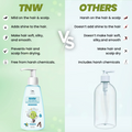 - Gentle Cleanser: TNW Baby Shampoo is a delicate cleanser that effectively removes dirt and impurities from your child’s hair and scalp. This shampoo for children is infused with a blend of natural elements and enriching oils.