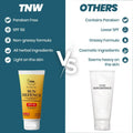 Description: Regardless of the season, applying sunscreen is essential for safeguarding your skin against the damaging UVA & UVB rays. Excessive sun exposure can lead to suntans and harm skin tissues. Hence, TNW offers a comprehensive solution for daily sun protection with the TNW Sun Defence Cream. This all-natural sunscreen boasts SPF 50, effectively shielding your skin from tanning and sun damage while keeping it smooth. The SPF cream balances the skin's appearance without leaving it greasy or uneven. Suitable for all skin types, it prevents oiliness and guards against free radicals, ensuring a uniform complexion. The Natural Wash's Sun Defence Sunscreen with SPF 50 is an ideal ally when stepping outside. Crafted with herbal components, this sunscreen is beneficial for your skin and contains no parabens. Its non-greasy, lightweight, and rapidly absorbing formula makes it simple and practical to use. Being gentle on the skin, this sunscreen seamlessly integrates into your pores within moments, allowing you to continue your day fully shielded from the sun's intense rays.Ingredients: Aqua, Avobenzone, Benzophenone-3, Edta (Di-Sodium Edta), Iso Propyl Myristate (Ipm), Octocrylene, Octyl Salicylate, Omc (Octyl Methoxy Cinnamate), Fragrance Potassium Cetyl Phosphate, T.E.A (Triethylamine), Suncate De, Tinovis Ade, Titanium Di Oxide (Micronised), Vitamin E Acetate, Cucumber Ext., Saffron Ext., Aloe vera Ext., Licorice Ext., Jojoba Oil