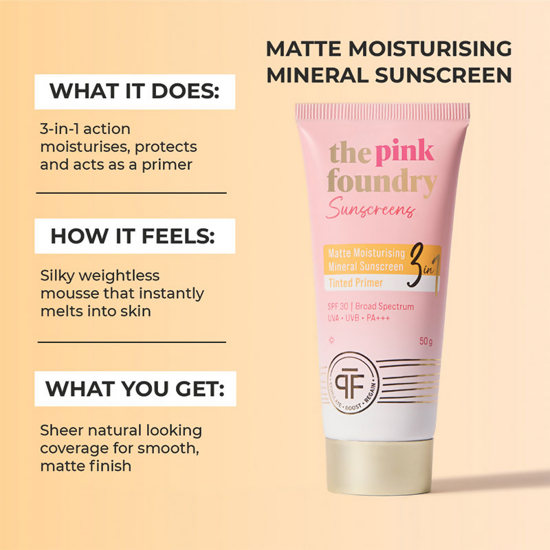 The Pink Foundry Tinted Matte Mineral Moisturising Sunscreen - SPF 30, PA+++ & UVA UVB Protection