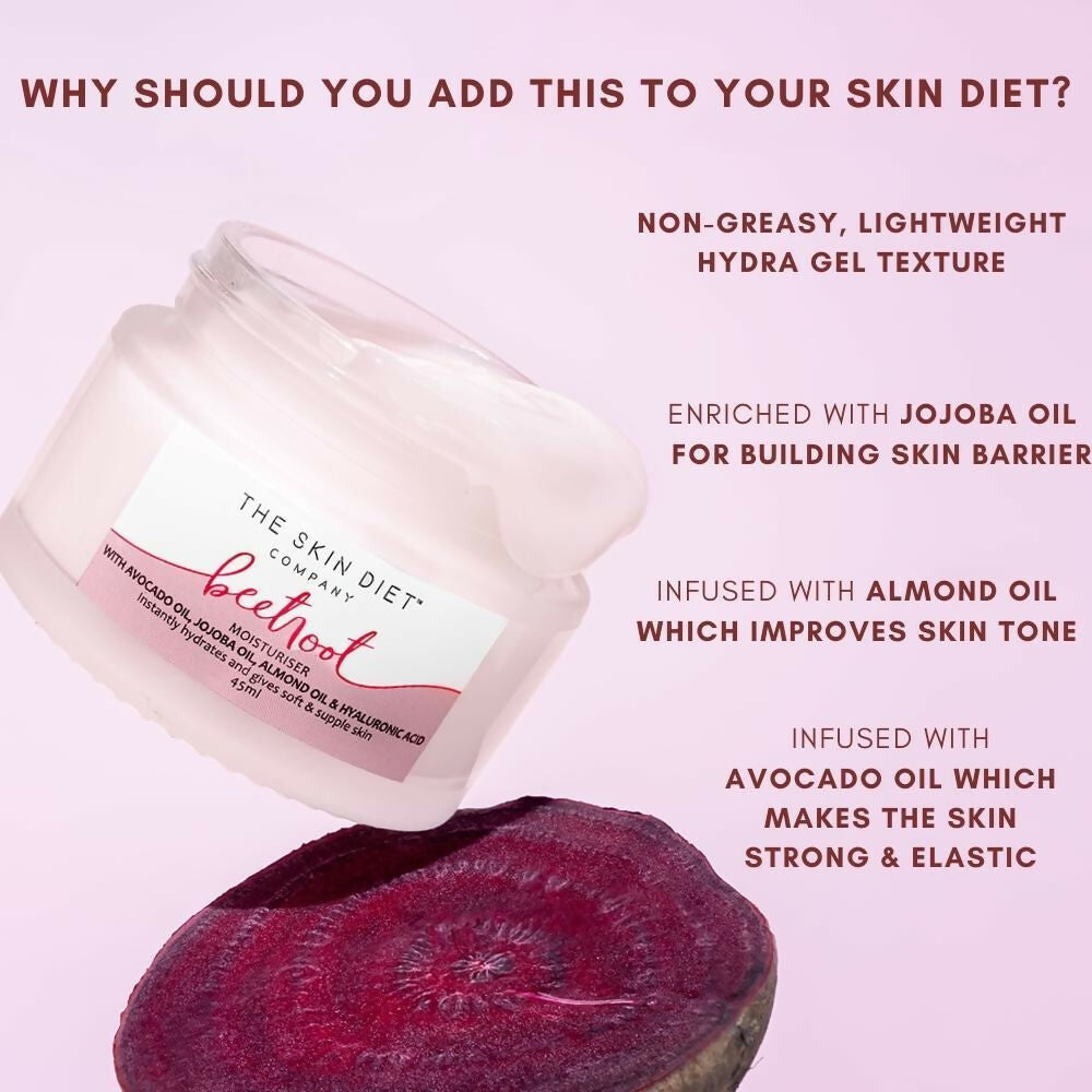 The Skin Diet Company Beetroot Moisturiser Lightweight, Non-Greasy - Dry/Oily Skin + Hyaluronic Acid