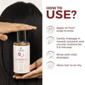 - Step 1: Dispense a few drops of oil onto your palm and gently massage it into the scalp for a thorough 15-20 minutes.