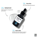 - This 2.0% Salicylic Acid serum is crafted for all skin types, particularly those affected by acne and blemishes. By incorporating this serum into your daily routine, you can remove dead skin cells that lead to blocked pores, resulting in a clearer complexion. The serum is expertly formulated with Zinc PCA, complementing salicylic acid, as Zinc enhances the serum's antibacterial and astringent properties, making it more effective in controlling oil production and preventing acne breakouts.