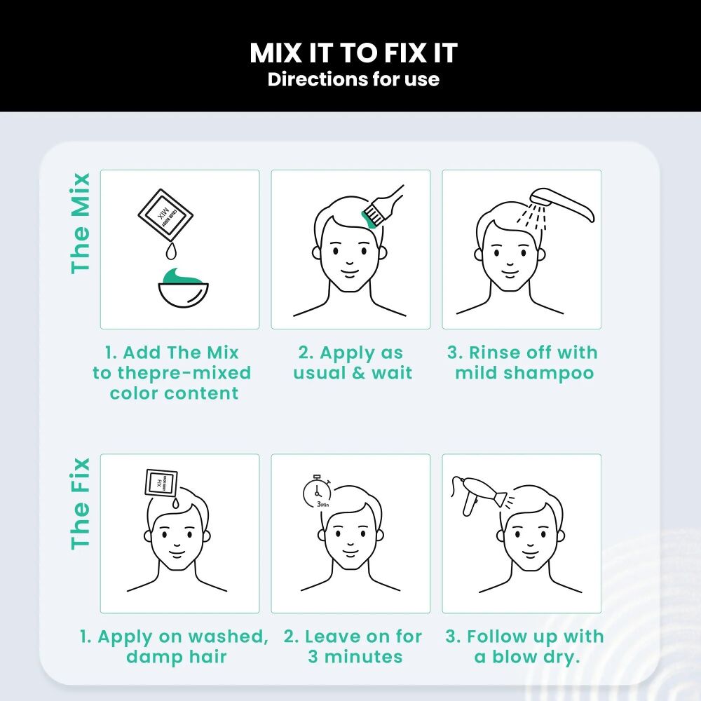 - THE Mix: Incorporate 10 mL of The Mix for every 100gm of color and 150gm of bleach powder.