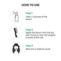 - Dispense 1-2 pumps of the serum and apply to dry hair.