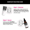 - Apply a pea-sized amount of the Goodbye Acne Facial Cleanser to damp skin and massage thoroughly. Rinse with water and gently pat dry. Use twice daily and follow with Goodbye Acne Face Serum for optimal results.