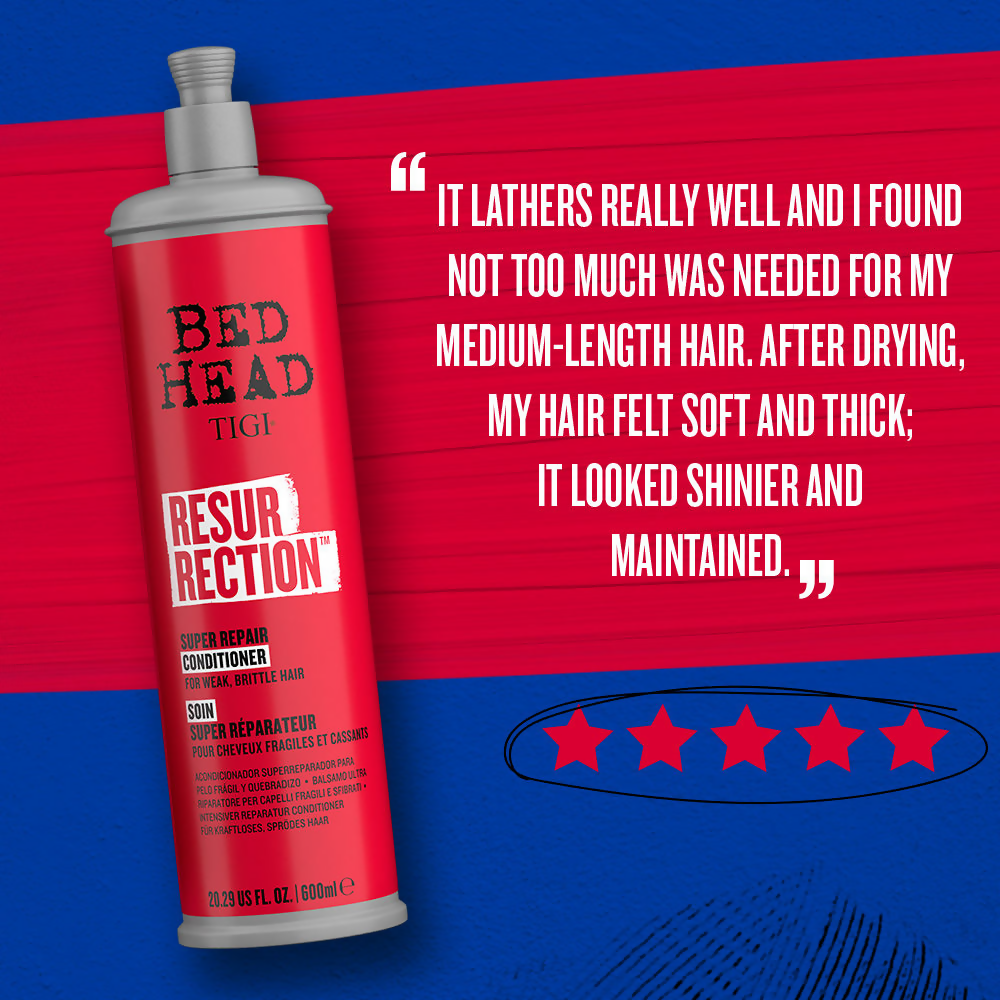 About the product:Managing fragile and brittle hair can often be a challenge. From dealing with frizz to taming unruly locks, the issues seem endless. Fortunately, there's no need for limp and lifeless hair to remain that way! Bed Head’s Resurrection Super Repair Hair Conditioner is the perfect solution to tackle these concerns. Crafted with a potent repairing formula and “Amodimethicone,” this Nourishing Conditioner effectively reinforces and restores delicate, weak hair for a more vibrant and revitalized appearance.