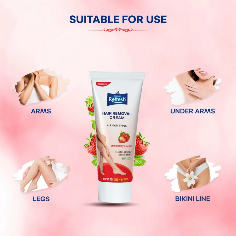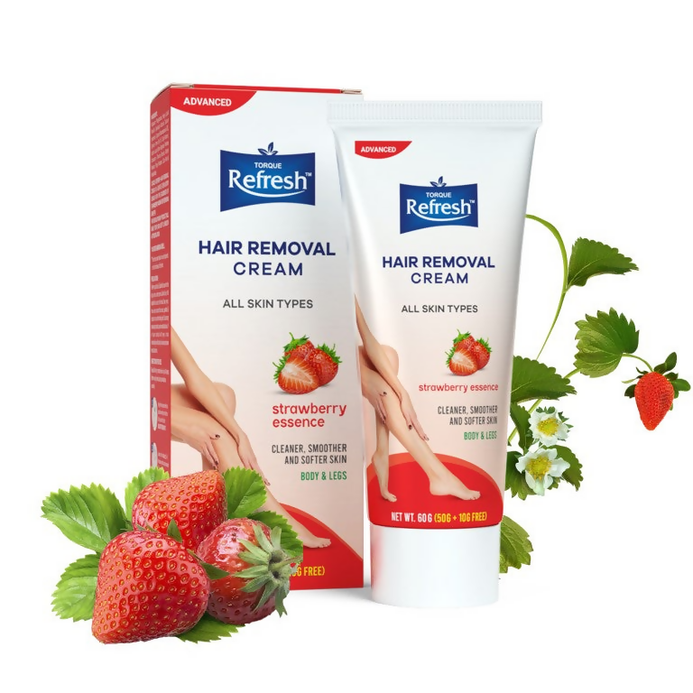 Indulge in the natural essence with Torque Refresh Hair Removal Cream, meticulously formulated with the goodness of strawberries, celebrated for their skin-enhancing properties. Discover the pathway to glowing, hair-free skin without the concern of skin darkening. Effortlessly Eliminate Fine Hair: Bid farewell to unwanted fine hair on your legs, arms, and underarms without experiencing burns, nicks, or cuts. Our hair removal cream provides a mild and efficient solution, leaving your skin velvety smooth and hair-free.