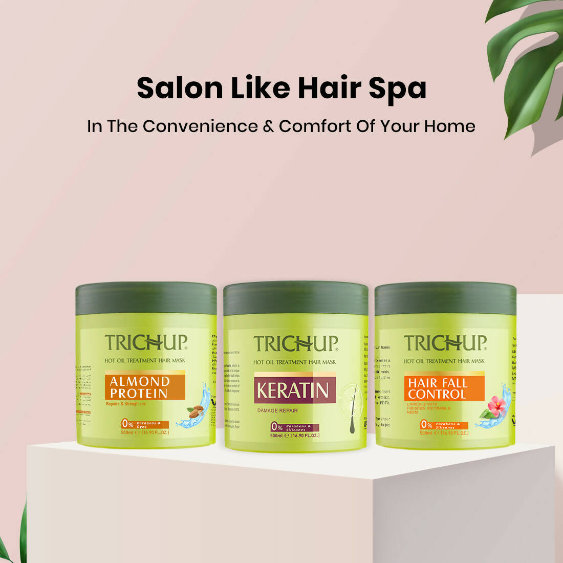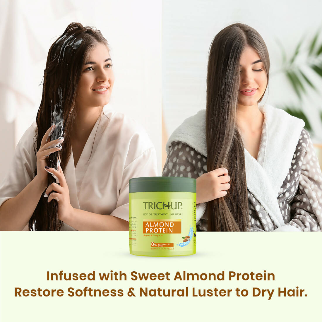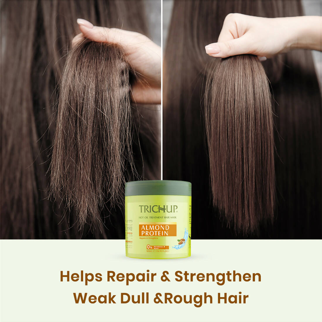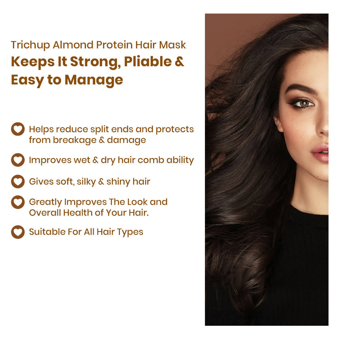 The Trichup Almond Protein Hair Mask is enriched with Sweet Almond Protein, designed to lock in moisture while restoring softness and natural shine to dry hair. It's ideal for all hair types. This hair mask ensures your hair remains strong, soft, and manageable, while also keeping your scalp hydrated and clean.