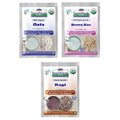 Introducing TummyFriendly Foods Certified Organic Stage1 Sprouted Porridge Mixes Trial Packs featuring Sprouted Ragi, Sprouted Brown Rice, and Oats. Each pack contains 50g of cereal, totaling 150g across the trio.