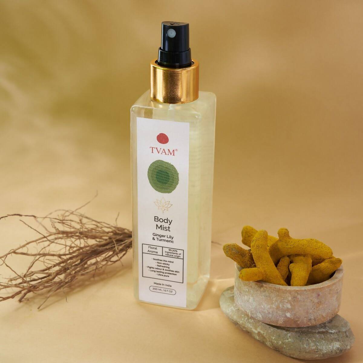 - Experience the delightful floral essence of Ginger Lily and Vetiver, enhanced by the beneficial properties of Wild Turmeric and Ashwagandha. This Body Mist is not just captivatingly aromatic but also brimming with skin-enhancing advantages. Carefully curated, these calming and invigorating ingredients create a perfect fragrance for daily use.