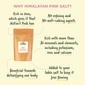 - Abundant in essential minerals like Iron, Copper, Zinc, and Manganese, this Pink Himalayan Salt is sourced from the Himalayan region. Known for being a more healthful option compared to conventional refined table salt, it enhances the flavor of dishes and can also be utilized as a bath salt.