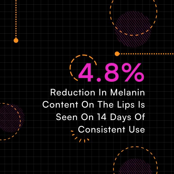 Vitamin C & Niacinamide: This is the World's First Anti-Pigmentation Lipstick, enriched with Vitamin C to help fade pigmentation. It has been proven to reduce melanin by 4.8%, resulting in visibly brighter lips within 14 days of consistent use.