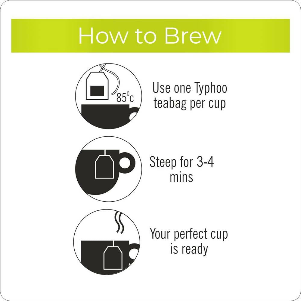 - Place one Typhoo teabag per cup in boiling water, let steep for 3-5 minutes, and your Perfect cup is ready.