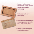 Prepare to illuminate like a goddess with our Cha-Ching highlighter in the Sizzlin' shade! Crafted to provide a radiant 'lit from within' luminosity, this golden-hued highlighter will make you dazzle like a jewel. The ultra-soft, buttery composition, formulated with advanced wet-powder technology, melds effortlessly with your skin, creating a striking high-beam brilliance that elevates your appearance. The featherlight and enduring formula of the Cha-Ching highlighter guarantees your glow remains vibrant all day. Coupled with innovative travel-friendly credit card packaging, they are as chic as they are functional. The Sizzlin' shade is a fiery golden hue that delivers immediate radiance and flair to any ensemble. This highlighter is highly blendable and buildable, allowing you to tailor your glow to your liking.