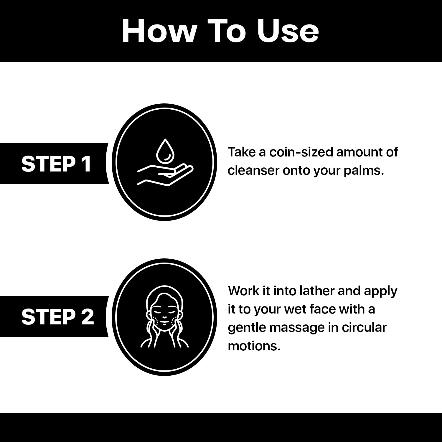 How to use:Dispense a coin-sized amount of the cleanser into your hands, create a lather, and apply it to your damp face using gentle circular massage movements. Use as needed.