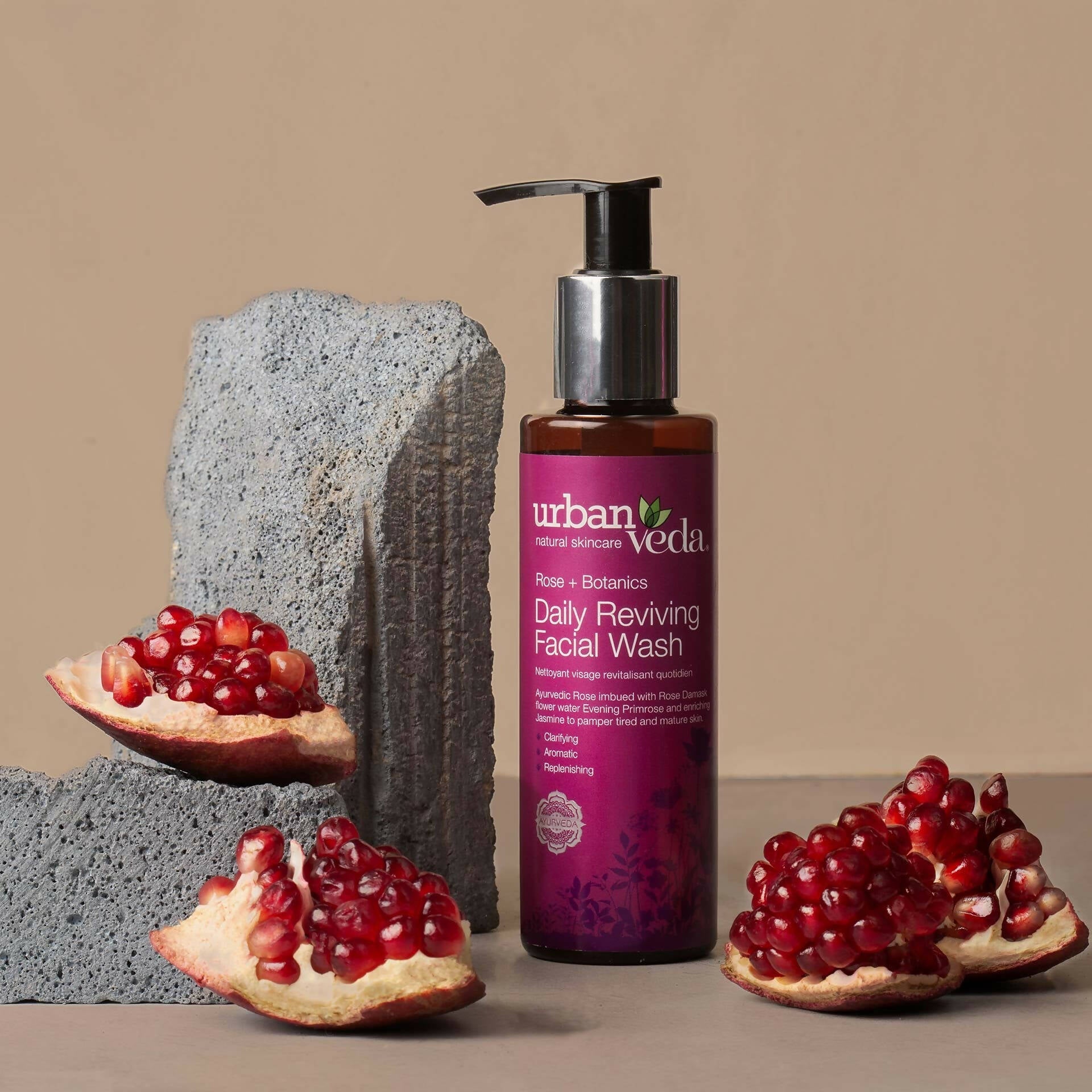 - An exquisite blend of Rose Damask oil, flower water, and Rosehip oil to moisturize parched skin, restore vitality, and rejuvenate. This nourishing facial wash features pro-aging Arjuna heartwood along with detoxifying Rose Geranium and Clove, traditionally utilized to help clarify and tone.