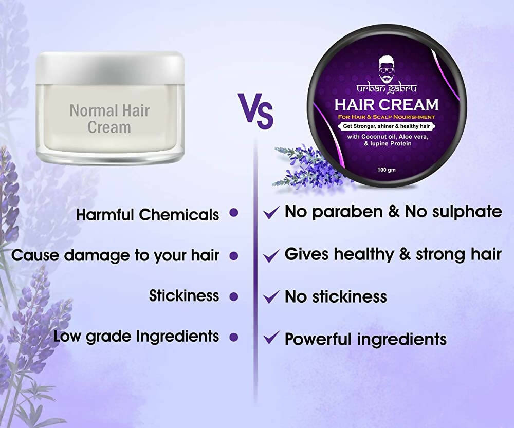- Urbangabru hair cream is infused with natural proteins that offer deep nourishment and enhance the manageability of your hair. It is the top choice for men from Urbangabru, featuring the richness of coconut oil, lupine protein, and aloe vera. This cream also hydrates each strand and conditions your hair from the roots to the ends. While there are numerous hair creams available, this stands out as the premier option for men in India. Incorporate it into your daily routine to maintain hair that is soft, smooth, and healthy.