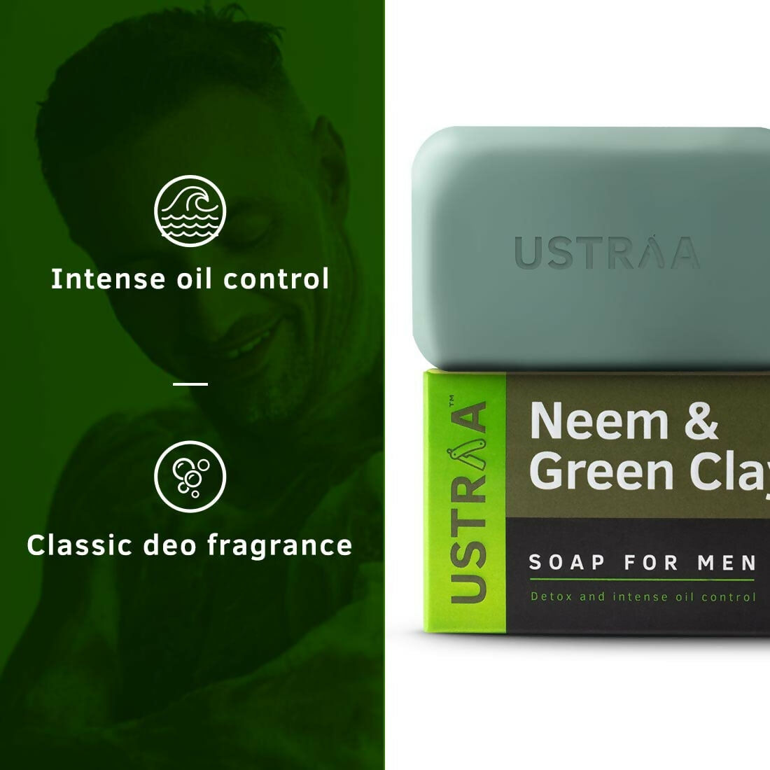 Ustraa Deo Soap For Men - Neem and Green Clay, Sea Minerals, & Activated Charcoal