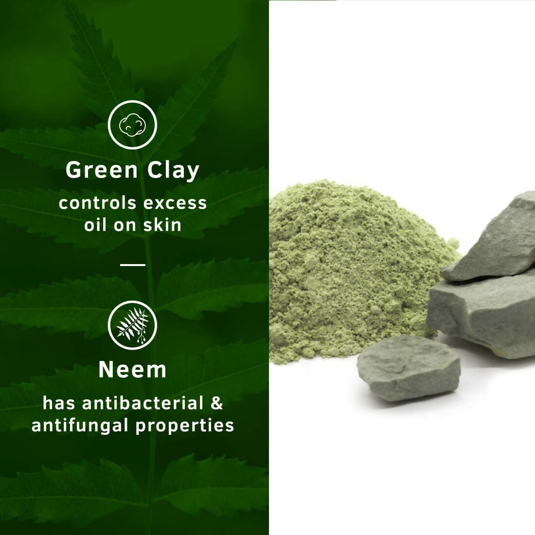 - Neem and Green Clay Soap purifies by eliminating germs and detoxifying, while Neem's antibacterial and antifungal properties keep skin revitalized and pristine.