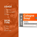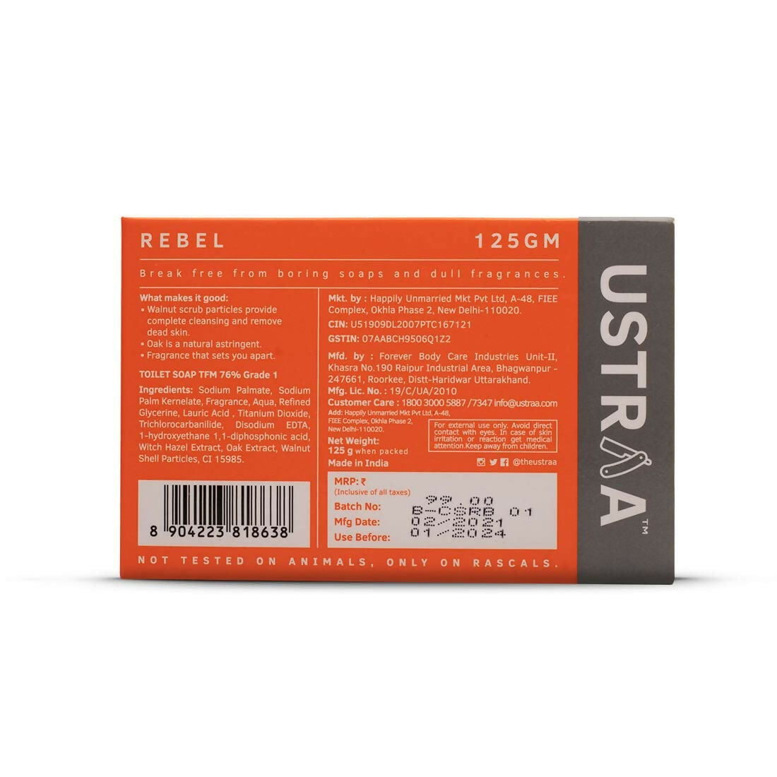 - Experience the invigorating Ustraa Rebel Cologne Soap, enriched with walnut granules for thorough cleansing and gentle exfoliation during your bath.