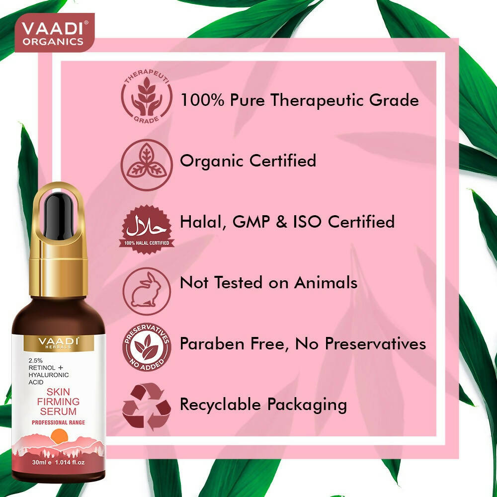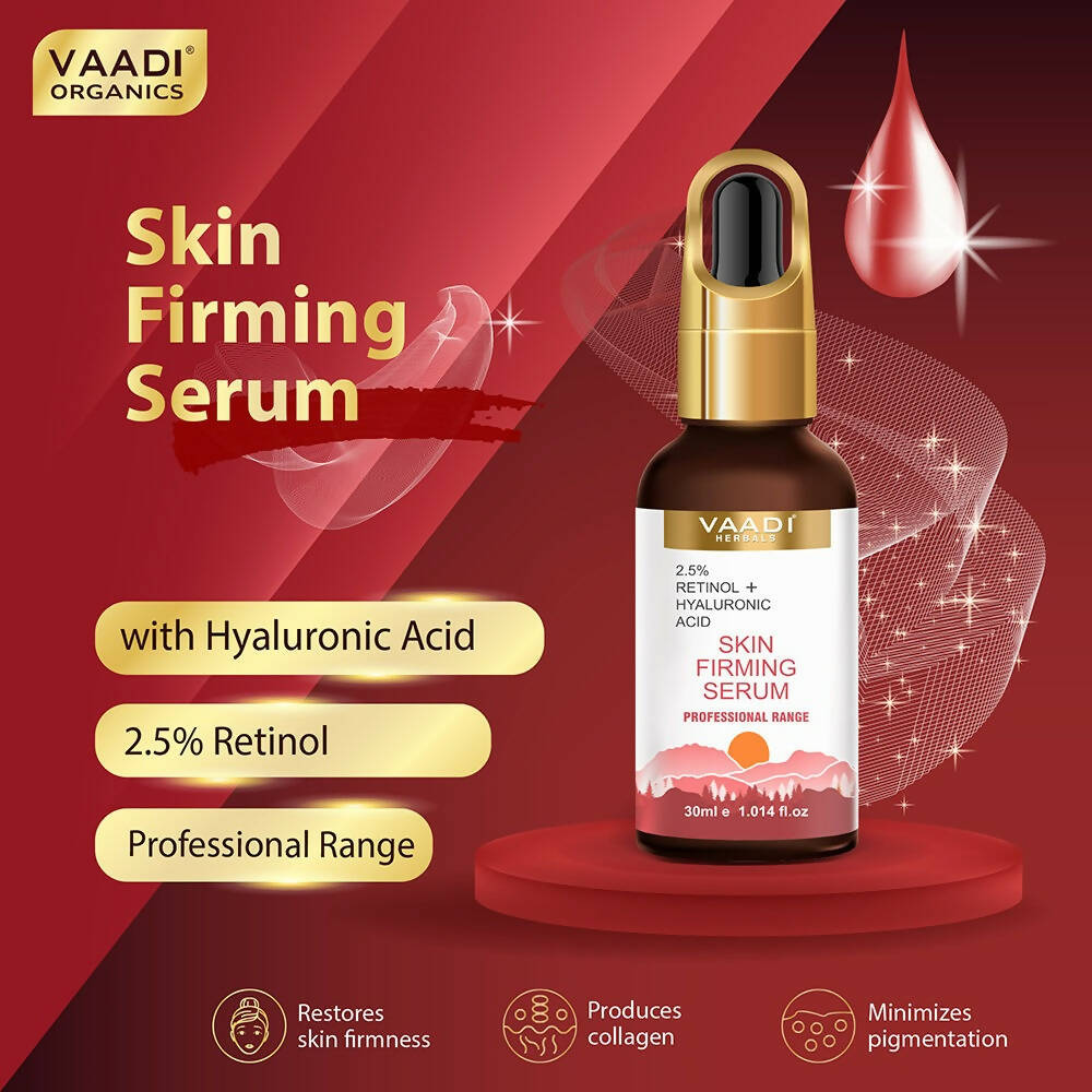- The Vaadi Herbals Skin Firming Serum is a highly potent formulation designed to firm the skin and combat signs of aging, utilizing retinol and hyaluronic acid to diminish the visibility of wrinkles, enhance uneven skin tone, and rejuvenate youthful skin appearance. This concoction ensures the skin stays vibrant and nourished by softening and revitalizing damaged and fatigued skin.