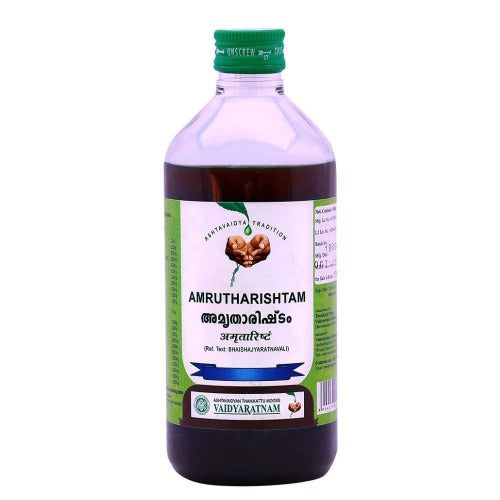 Vaidyaratnam Amrutharishtam is an esteemed Ayurvedic concoction. Also known as Amritarishta, this remedy derives its name from Amrut (Giloy) and Aristha.