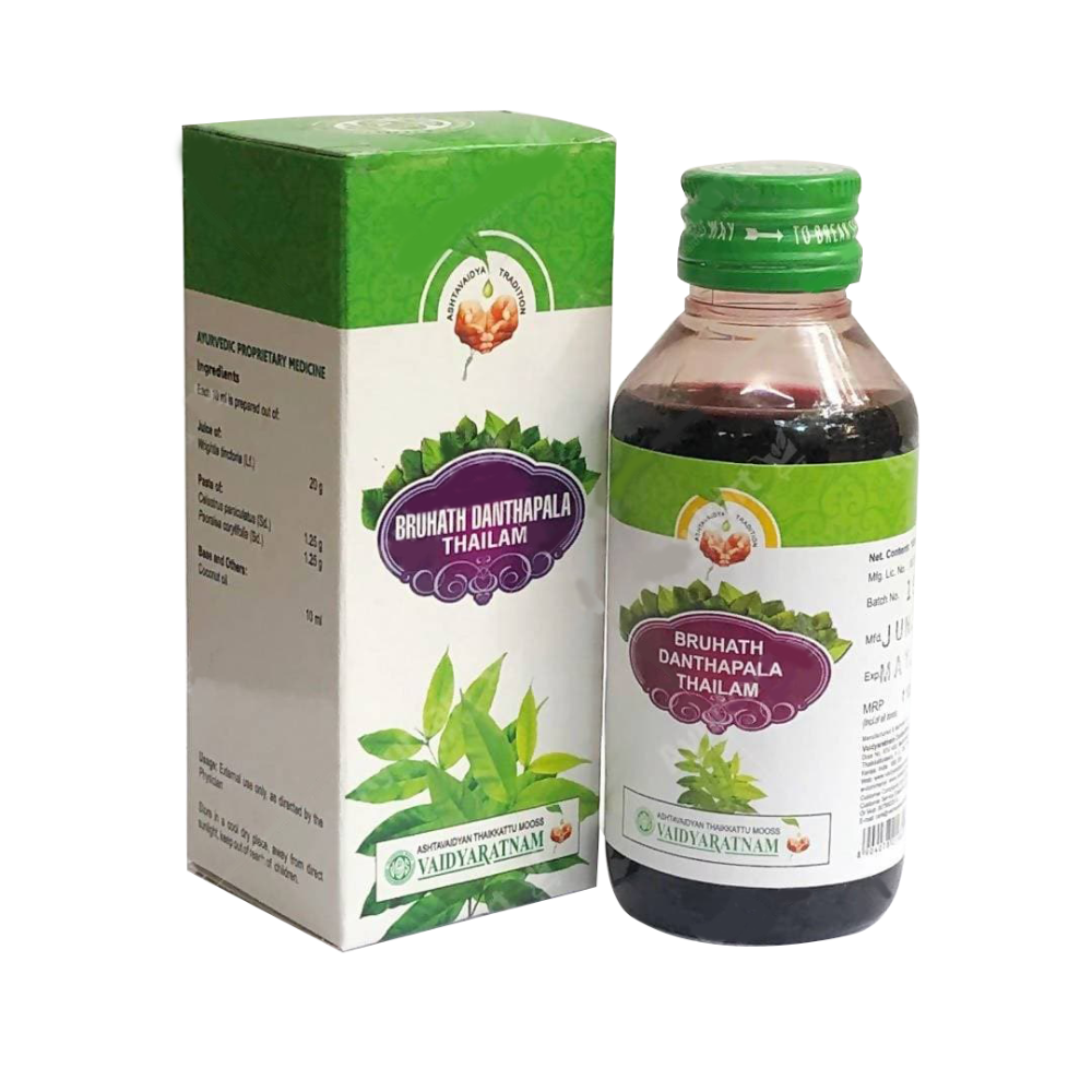 Vaidyaratnam Bruhath Danthapala Thailam is an Ayurvedic formulation. It is an herbal oil.